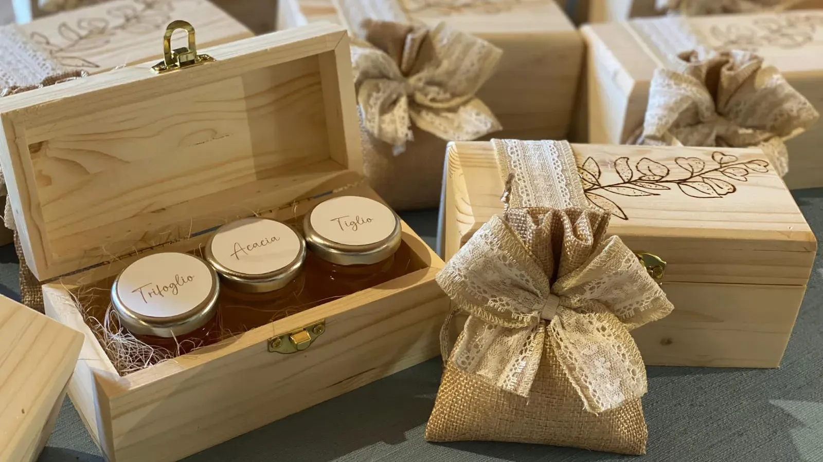 - Favours (handcrafted items and food products such as oil, gin, limoncello, honey, etc.)